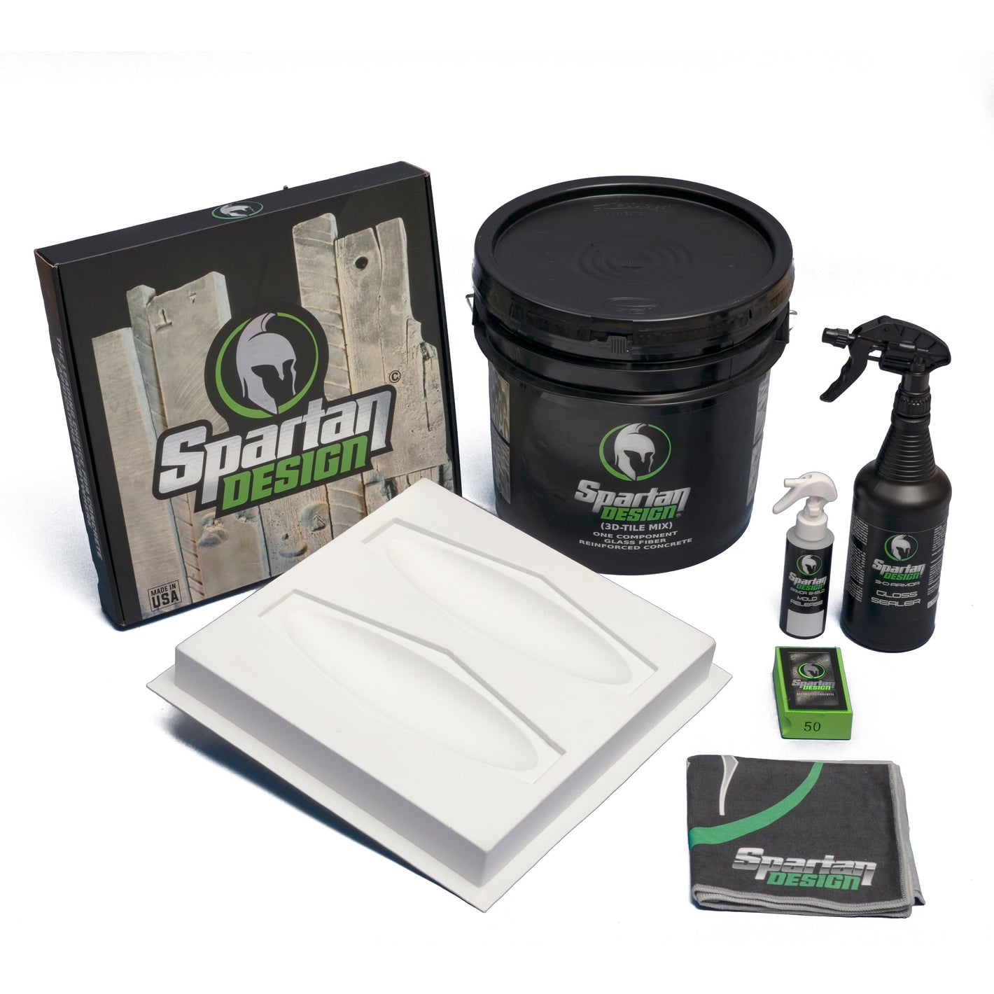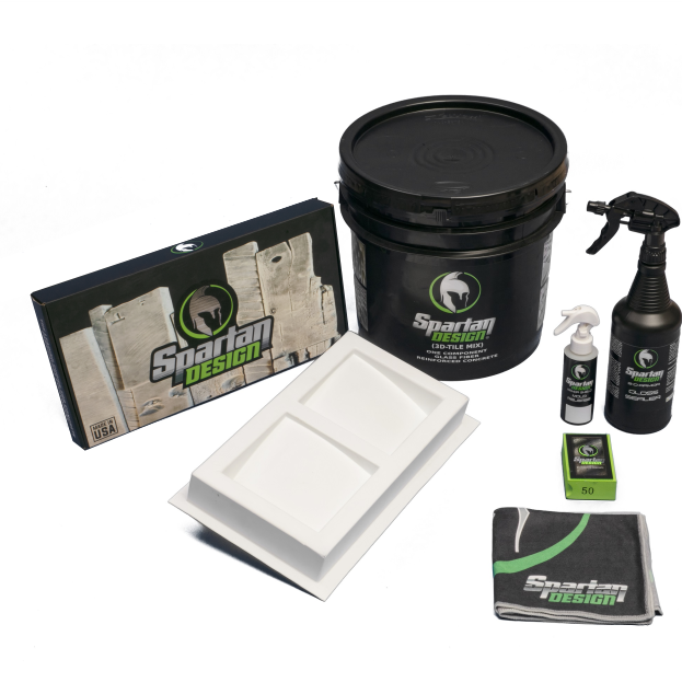 Spartan Design 3-D tile mix was designed for 3-D tiles and precast parts alike, with a 9500+ psi compression strength. Very easy to use and is a one-component mix that includes all added mix, polymers, and fibers just add water. No more complicated weighing and calculating each component of the mix, we have done all the calculations for you, just add the appropriate volume of water as per the directions listed on the bucket.